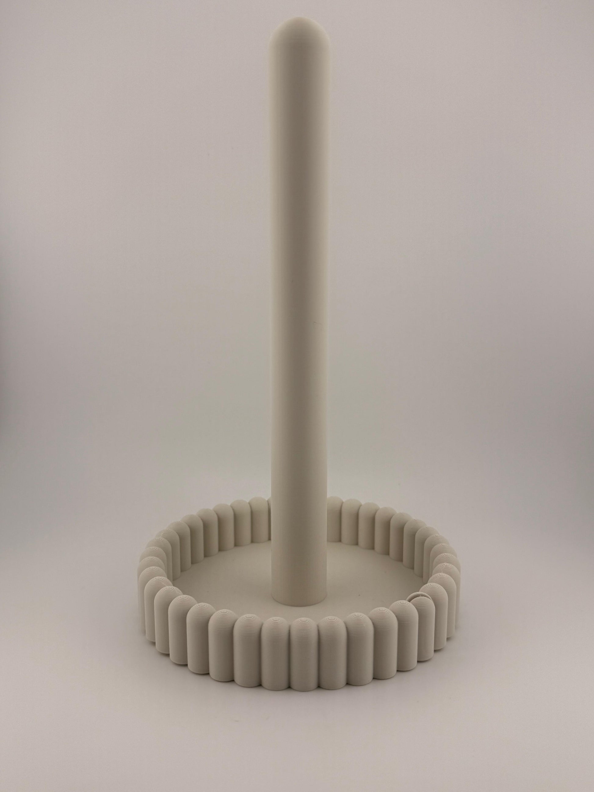 Der Küchenrollenhalter „Rondel“ verbindet eine klar aufstrebende Linienführung mit einer ruhig gerundeten Basis und wirkt dadurch zugleich stabil und elegant reduziert.